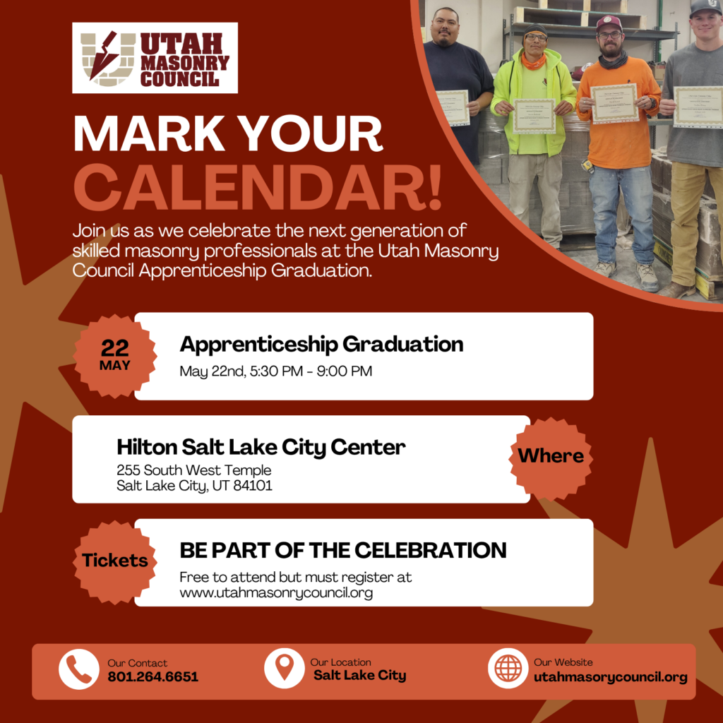 Join us as we celebrate the next generation of skilled masonry professionals at the Utah Masonry Council Apprenticeship Graduation.