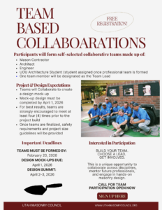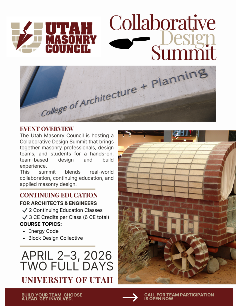 The Utah Masonry Council is hosting a Collaborative Design Summit that brings together masonry professionals, design teams, and students for a hands-on, team-based design and build experience.